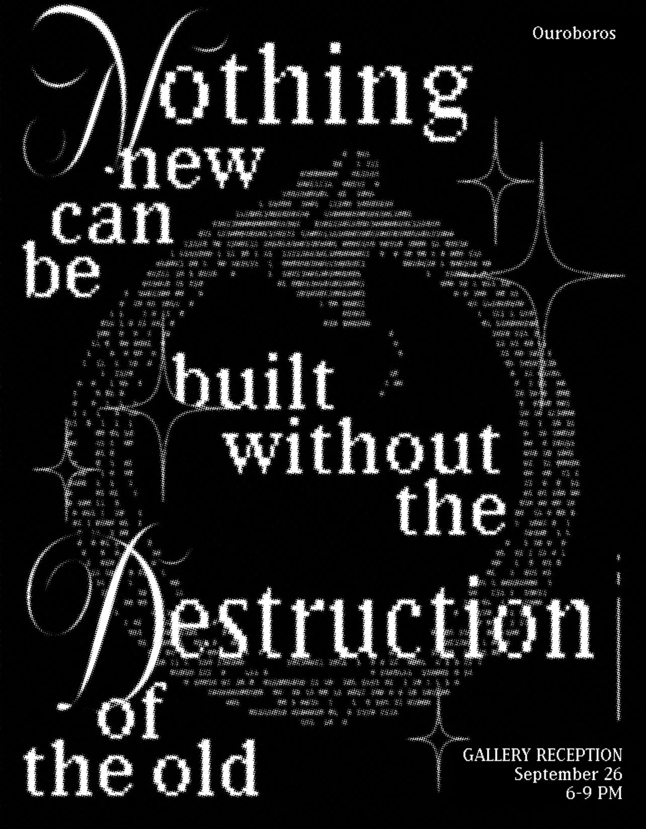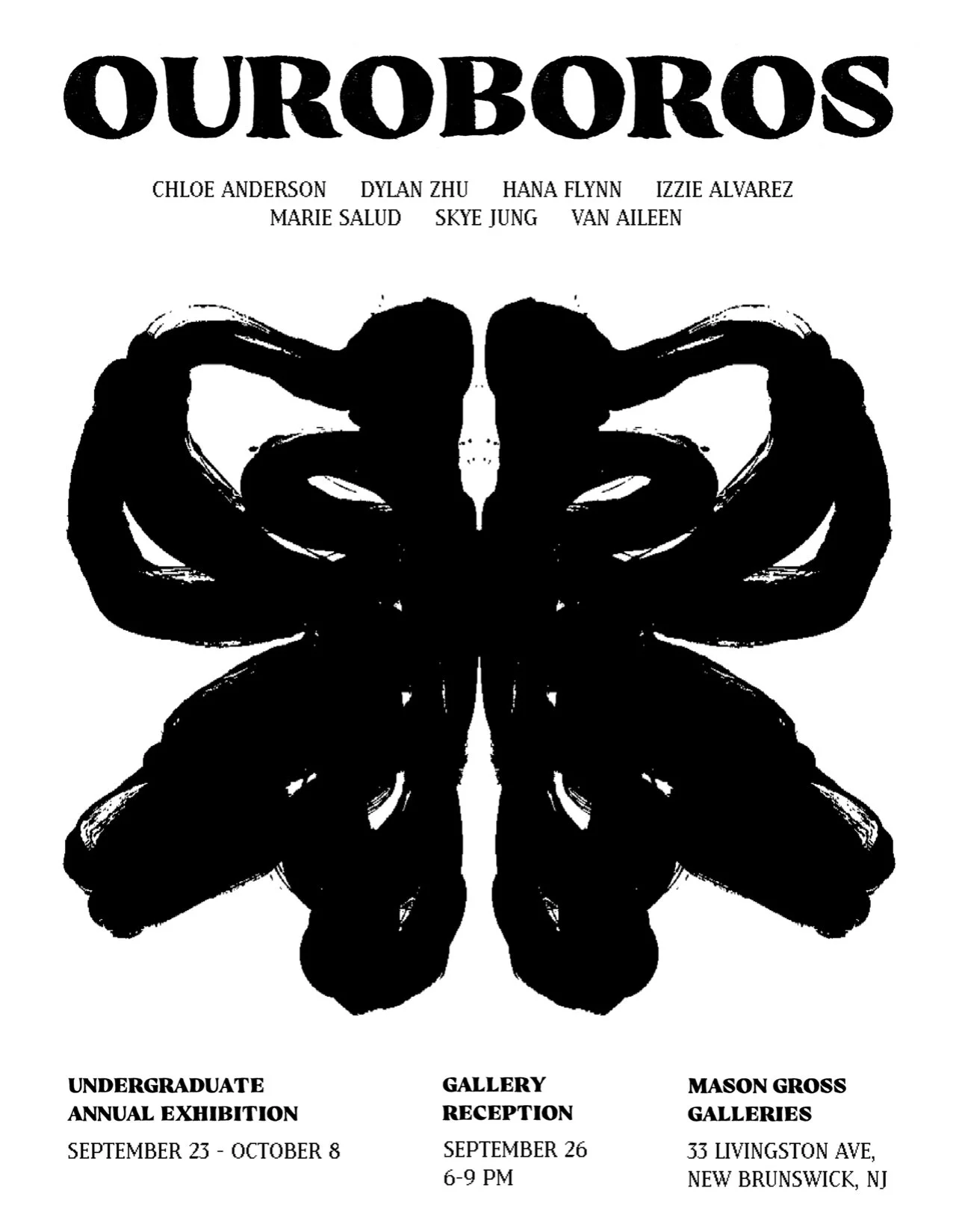 Co-curated by myself—Van Aileen, Izzie Alvarez, and Skye Jung, Ouroboros explores the transformative power of cyclical rebirth and destruction. This exhibition features the work of seven student artists, each reflecting on themes of metamorphosis through material, content, and form. The artists were encouraged to use secondhand and repurposed materials, offering a physical manifestation of the eternal cycle of decay and renewal. Ouroboros invites viewers to contemplate the intersection of the old and the new, emphasizing the possibility of reinvention in both
