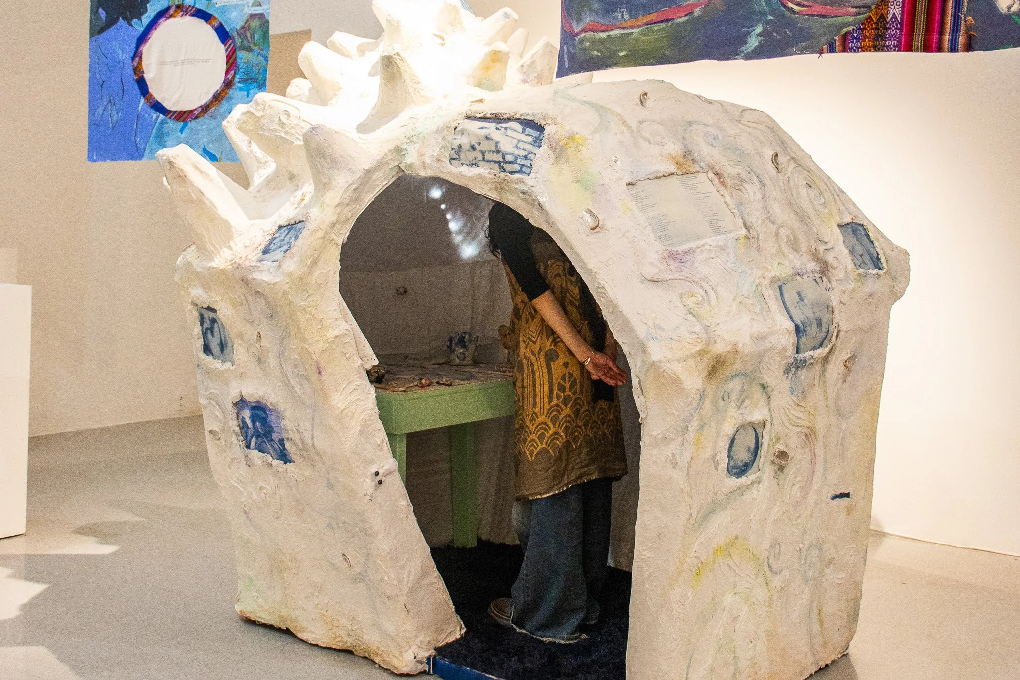 Created a large-scale, interactive installation where viewers were able to enter a seashell home. This project focused on the transient nature of home traveling with us through the people we meet, our loved ones, and memories. It is composed of three main parts derived from natural environments: (1) The Sea (2) The Sky (3) The Land. Each element exists together as a living organism based on world-building etymologies rooted in real life. I knew when I began this project one year it was not only a first departure, but a journey to carry fragments of a place without fully understanding